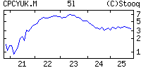 Czas (CET) | Rejon | Tiker | Dane | Okres | Aktualna | Poprzednia | Wykres | | środa, 20 listopada 2024 | | 8:00 | | Wielka Brytania | CPCYUK.M | Bazowa inflacja CPI R/R | paź | 3.3% | 3.2% |  | | 8:00 | | Wielka Brytania | CPIMUK.M | Inflacja CPI M/M | paź | 0.6% | 0% |  | | 8:00 | | Wielka Brytania | CPIYUK.M | Inflacja CPI R/R | paź | 2.3% | 1.7% |  | | 8:00 | | Wielka Brytania | PPIYUK.M | PPI R/R | paź | -0.8% | -0.7% |  | | 8:00 | | Wielka Brytania | PPNMUK.M | PPI kupna M/M | paź | 0.1% | -0.5% (R) |  | | 8:00 | | Wielka Brytania | PPNYUK.M | PPI kupna R/R | paź | -2.3% | -1.9% (R) |  | Co oznaczają poszczególne wskaźniki makroekonomiczne? · Lista wskaźników kalendarium |