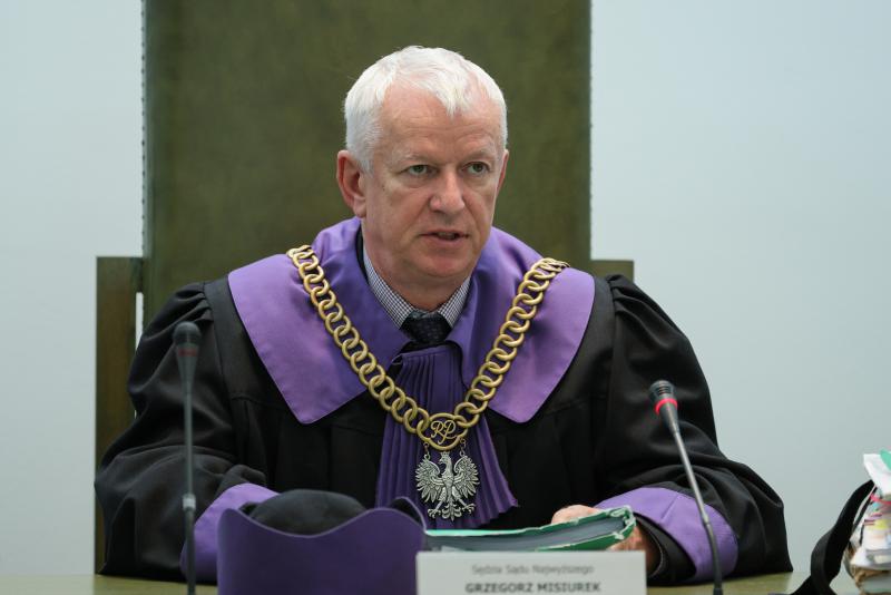 08.10.2025, Warszawa (PAP) - Sędzia Grzegorz Misiurek na sali Sadu Najwyższego w Warszawie, 8 bm. Sąd ma ogłosić wyrok w sprawie sporu o 2,5 mln zł należności między Lechem Poznań i Wartą Poznań od transferu w 2020 r. obecnego piłkarza reprezentacji Polski Jakuba Modera z drużyny Lecha do angielskiego Brighton & Hove Albion. (fot. Paweł Supernak)