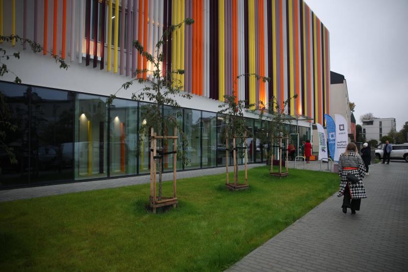 11.10.2025, Kraków (PAP) - Otwarta przy ul. Przyzby w Krakowie, 11 bm. nowa siedziba Centrum Kultury Podgórza - Ośrodka Ruczaj. Stanowi go nowoczesny budynek o powierzchni użytkowej około 4700 m2 przeznaczony do działalności kulturalnej, edukacyjnej i rekreacyjnej dla wszystkich grup wiekowych. Na czterech naziemych kondygnacjach oraz dwóch podziemnych znajdują się przyposobione sale plastyczne, muzyczne, taneczne, sportowe, językowe oraz techniczne. Znajduje się też wielofunkcyjna sala widowiskowa z balkonem i foyer na około 300 osób. Budynek jest w pełni przystosowany do potrzeb osób z niepełnosprawnościami. (fot. Łukasz Gągulski)