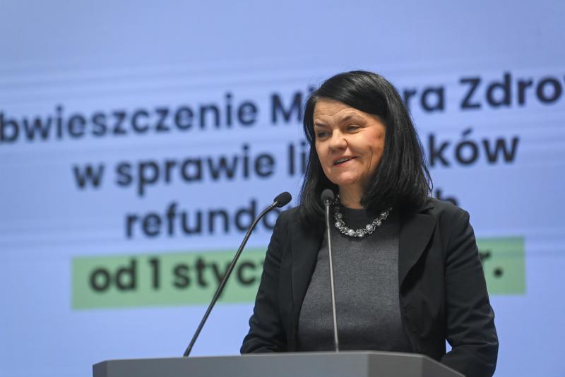 15.12.2025, Warszawa (PAP) - Wiceminister zdrowia Katarzyna Kacperczyk podczas konferencji prasowej w siedzibie ministerstwa w Warszawie, 15 bm. Konferencja dot.projektu nowej listy leków refundowanych, która będzie obowiązywać od 1 stycznia 2026 r. (fot. Piotr Nowak)