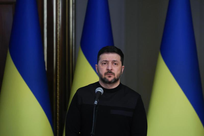 03.03.2026, Kijów (PAP) - Prezydent Ukrainy Wołodymyr Zełenski podczas konferencji prasowej w Kijowie, 3 bm. Trwa inwazja Rosji na Ukrainę. (fot. Victor Kovalchuk)