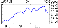 | | | Zmiana | +0.03 (+0.21%) | | Max/min | 14.39 / 14.39 | | Zmiana 52t | +1.33 (10.18%) | | Max/min 52t | 14.45 / 12.13 |