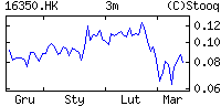 | | Market On-line | | | | | | | | Kurs | 0.092 HK$ | | Data | 12 gru, 9:00 | | Otwarcie | 0.092 | | Poprzedni | 0.092 | | Bid | 0.092 | | Wolumen | 24,860,000 | | Obrót | 2.28 mln |