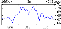 | | | Zmiana | -0.12 (-0.18%) | | Max/min | 67.11 / 67.11 | | Zmiana 52t | +9.79 (17.08%) | | Max/min 52t | 68.82 / 50.67 |