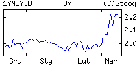 | | | Zmiana | -0.012 (-0.61%) | | Max/min | 1.942 / 1.942 | | Zmiana 52t | -0.447 (-18.71%) | | Max/min 52t | 2.422 / 1.820 |