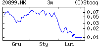 | | Market On-line | | | | | | | | Kurs | 0.038 HK$ | | Data | 15 gru, 9:00 | | Otwarcie | 0.048 | | Poprzedni | 0.050 | | Bid | 0.037 | | Wolumen | 20,995,000 | | Obrót | 938 tys |