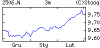 | | | Zmiana | -0.01 (-0.10%) | | Max/min | 9.61 / 9.61 | | Zmiana 52t | -0.48 (-4.76%) | | Max/min 52t | 10.02 / 9.57 |