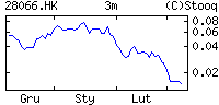 | | Market On-line | | | | | | | | Kurs | 0.048 HK$ | | Data | 12 gru, 9:00 | | Otwarcie | 0.045 | | Poprzedni | 0.049 | | Wolumen | 910,000 | | Obrót | 40.2 tys |