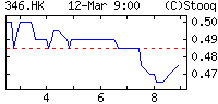 | | Market On-line | | | | | | | | Kurs | 0.375 HK$ | | Data | 15 gru, 9:00 | | Otwarcie | 0.350 | | Poprzedni | 0.375 | | Bid | 0.355 | | Wolumen | 322,500 | | Obrót | 117 tys |