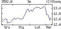 | | | Zmiana | +0.0262 (+0.21%) | | Max/min | 12.6136 / 12.6136 | | Zmiana 52t | +0.5807 (4.83%) | | Max/min 52t | 12.6708 / 11.7179 |