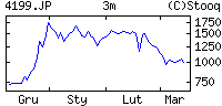 | | Market On-line | | | | | | | | Kurs | 731 ¥ | | Data | 12 gru, 7:00 | | Otwarcie | 746 | | Poprzedni | 734 | | Wolumen | 19,900 | | Obrót | 14.7 mln |