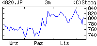 | | Market On-line | | | | | | | | Kurs | 810 ¥ | | Data | 17 lis, 7:00 | | Otwarcie | 815 | | Poprzedni | 812 | | Wolumen | 183,800 | | Obrót | 150 mln |