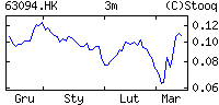 | | Market On-line | | | | | | | | Kurs | 0.109 HK$ | | Data | 4 gru, 9:00 | | Otwarcie | 0.103 | | Poprzedni | 0.101 | | Bid | 0.109 | | Wolumen | 5,450,000 | | Obrót | 576 tys |