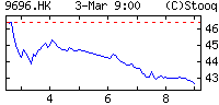 | | Market On-line | | | | | | | | Kurs | 46.46 HK$ | | Data | 9 gru, 9:00 | | Otwarcie | 48.14 | | Poprzedni | 48.28 | | Bid | 46.46 | | Wolumen | 3,181,100 | | Obrót | 149 mln |