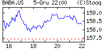| śro, 12 lis 2025, 0:44 CET, NY 18:44, Londyn 23:44, Tokio 8:44, ^SPX +0.21% | Ogólnie: Alibaba Group Holding Ltd (BABA.US) | | 11 lis, 22:01 160.8000 -5.0900 (-3.07%) |