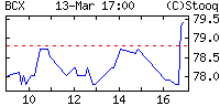 *Dotyczy zakresu notowań historycznych bazy Stooq | Data | Kurs | Wolumen | Obrót | | 22 paź | 87.2 | 4,000 | 698k | | 15 paź | 87.0 | 224,168 | 39m | | 15 paź | 87.0 | 145,000 | 25.2m | | 15 paź | 87.0 | 111,832 | 19.5m | | 15 paź | 87.0 | 96,785 | 16.8m | | 15 paź | 87.0 | 68,000 | 11.8m | | 15 paź | 87.0 | 20,000 | 3.48m | | 15 paź | 87.0 | 16,000 | 2.78m | | 15 paź | 87.0 | 15,000 | 2.61m | | 15 paź | 87.0 | 10,000 | 1.74m | Szczegóły transakcji...Prostszy dostęp do danych ogólnych BCX W polu podawania nazwy tikera wpisz "g:bcx", a Stooq od razu przeniesie Cię na tę stronę. |