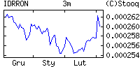 | | | Zmiana | +0.000000430 (+0.17%) | | Max/min | 0.000255198 / 0.000255198 | | Zmiana 52t | -0.000036783 (-12.60%) | | Max/min 52t | 0.000293089 / 0.000254488 |