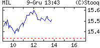 | wto, 11 lis 2025, 12:17 CET, NY 6:17, Londyn 11:17, Tokio 20:17, WIG20 +1.64%| Ogólnie: Bank Millennium SA (MIL) | | 10 lis, 17:00 16.16 +0.38 (+2.41%) |