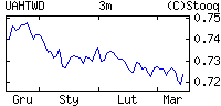 | 3 dni | -0.002577 | -0.35% | | 1 tydzień | -0.004843 | -0.66% | | 2 tygodnie | -0.004041 | -0.55% | | 1 miesiąc | -0.002714 | -0.37% | | 2 miesiące | -0.010239 | -1.38% | | 3 miesiące | -0.009886 | -1.34% | | 6 miesięcy | +0.008524 | +1.18% | | YTD | -0.012663 | -1.71% | | 1 rok | -0.054615 | -6.96% | | 2 lata | -0.097600 | -11.80% | | 3 lata | -0.096680 | -11.70% | | 5 lat | -0.274188 | -27.31% | | 10 lat | -0.507568 | -41.03% | | 20 lat | -5.639068 | -88.54% | | Cały zakres* | -14.881368 | -95.33% |