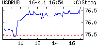 | | Market On-line | | | | | | | | Kurs | 78.9650 руб | | Data | 10 mar, 10:42 | | Otwarcie | 78.5650 | | Poprzedni | 78.4945 |
