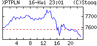 | sob, 7 mar 2026, 0:48 CET, NY 18:48, Londyn 23:48, Tokio 8:48, ^SPX -1.33% | Ogólnie: Platinum (ozt) / Polish Zloty (XPTPLN) | | 6 mar, 22:00 7846.39 +28.95 (+0.37%) |